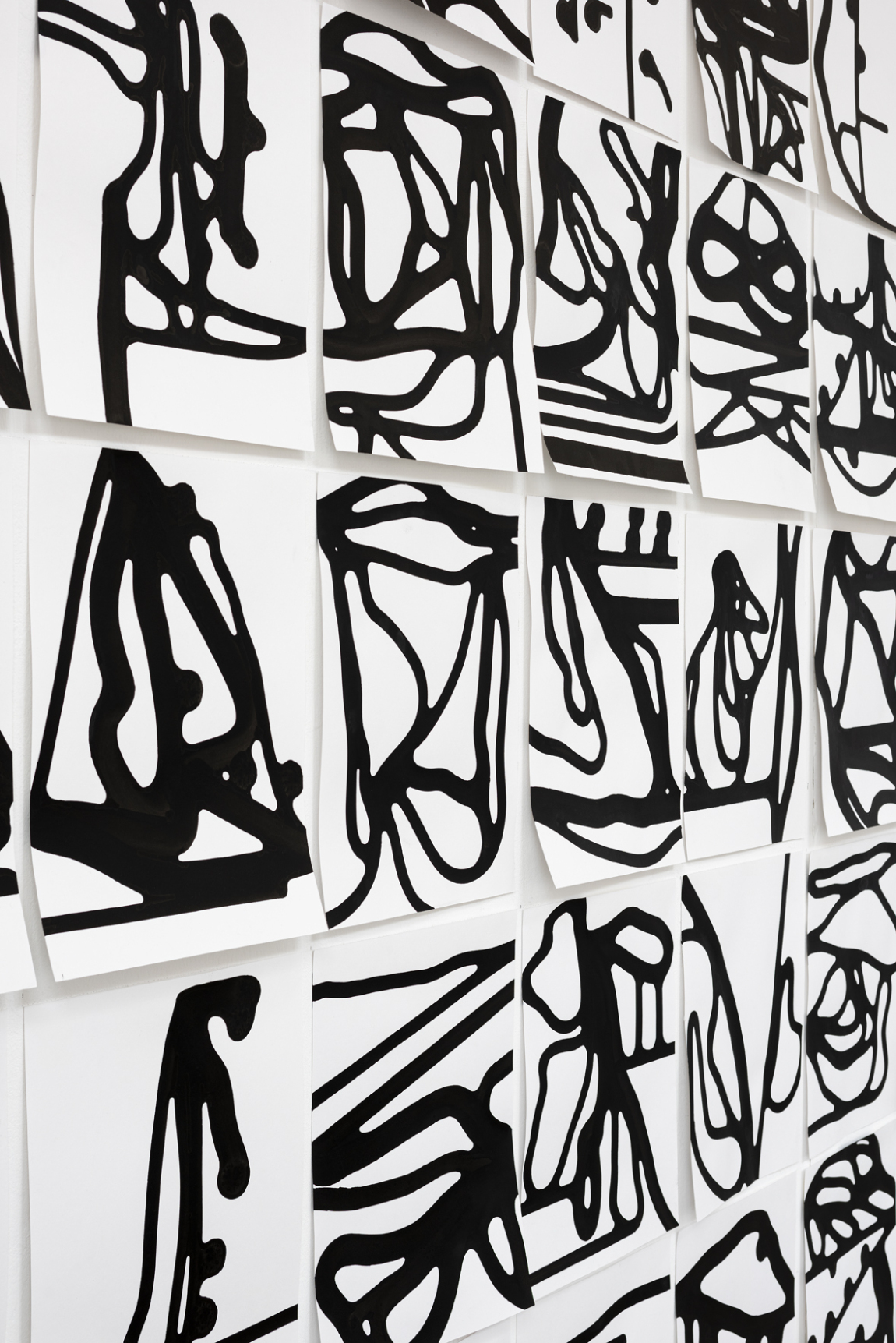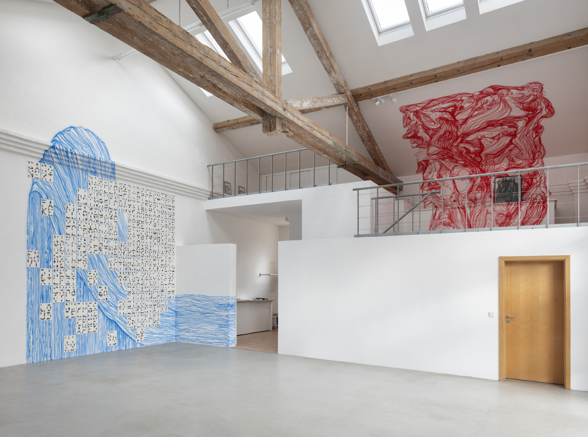 Mit graphischen Strukturen, Kürzeln und Notaten entstehen umfassende Bildsysteme und raumgreifende All-over-Strukturen, die das KunstHaus temporär verwandeln werden. Linien, Kürzel und Codes sind geradezu haptisch und mit eindringlicher Präsenz zu erfahren.