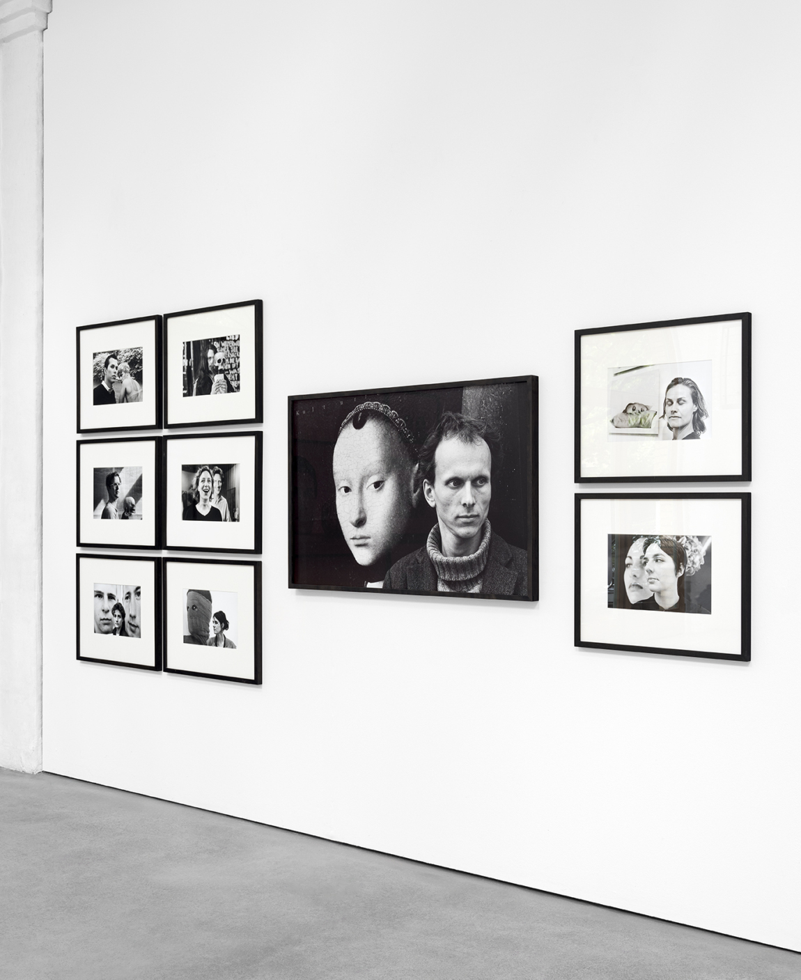 Arbeit steht Julian Rosefeldt vor einer Abbildung des flämischen Gemäldes „Bildnis einer jungen Dame“. Die verdoppelten, sich ähnelnden Physiognomien des Gegenwartskünstlers und der Frau aus dem späten 15. Jahrhundert lassen eine ungeahnte Verbindung über die Zeit hinweg entstehen. In einer frühen Fotografie doppeln sich die zwillingshaft gekleideten Gilbert & George als „Living Sculptures“. Die Dopplung findet sich bei Angelika Platen aber nicht nur als wiederkehrendes Motiv in ihrer Fotografie, sondern bildet auch ihr künstlerisches Selbstverständnis ab: