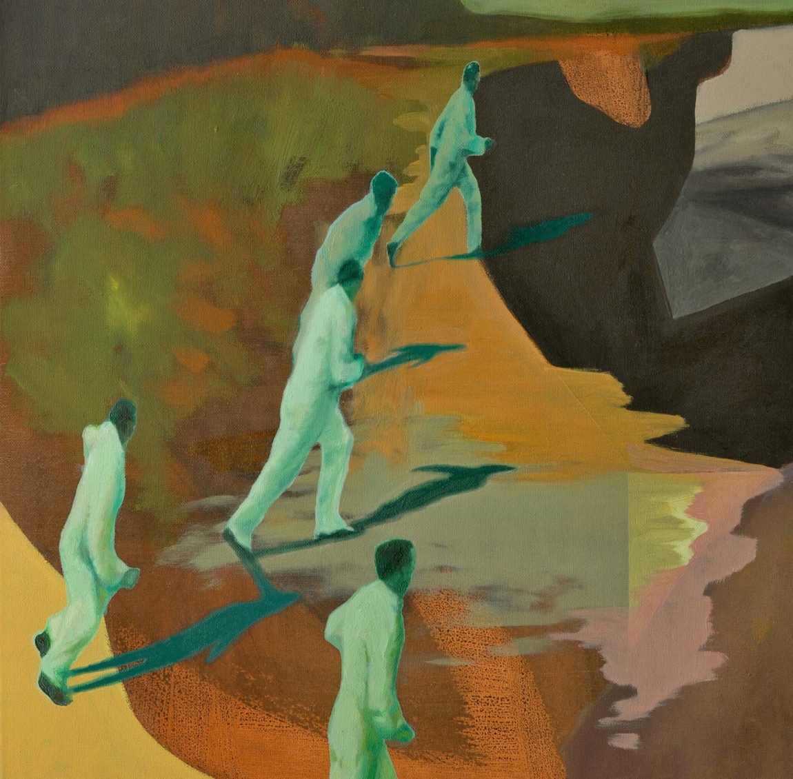 Die Werke von Jan Beumelburg sind eigenwillige Verschmelzungen von Gegenwärtigem und Gegensätzlichem. Vielfach ausgezeichnet, u.a. als Stipendiat des Künstlerhauses Schloss Wiepersdorf und des Landes Brandenburg, wurde der in Brandenburg an der Havel lebende Künstler nicht zuletzt durch sein „Verwandlungsamt“ bekannt. In der Einzelausstellung im KunstHaus Potsdam präsentiert er neueste Arbeiten zur Recherche um die eigene Familiengeschichte. Gefundene und alte Fotos dienen als Versatzstücke und werden malerisch in neue Kontexte gesetzt. Ausgangspunkt hierfür sind jedoch nicht Figuren, sondern Landschaften, die mit der Ambivalenz eines gleichermaßen gegenständlichen wie abstrakten Hintergrundes aufwarten. Jan Beumelburg richtet den Blick auf das unerwartet Auftauchende, auf das Ungreifbare in seinen Gemälden und sensibilisiert den Blick auf das Nebensächliche, Alltägliche, das doch unser aller Leben maßgeblich bestimmt.