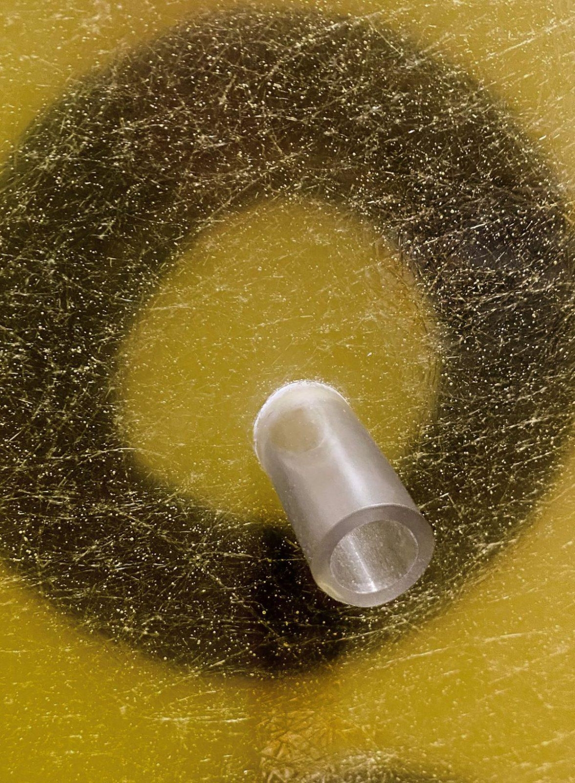 Transluzide 46/00 (Detail), 2000, Schellack, Ölfarbe und Plastikröhren auf zwei Polyesterplatten, 100 × 150 × 4 cm; Foto: Margareta Hesse